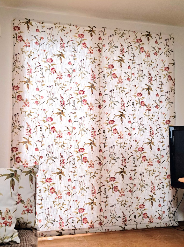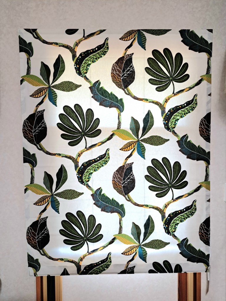 刺繍が可愛いボタニカルなファブリックのローマンシェード(ダブルスタイル)