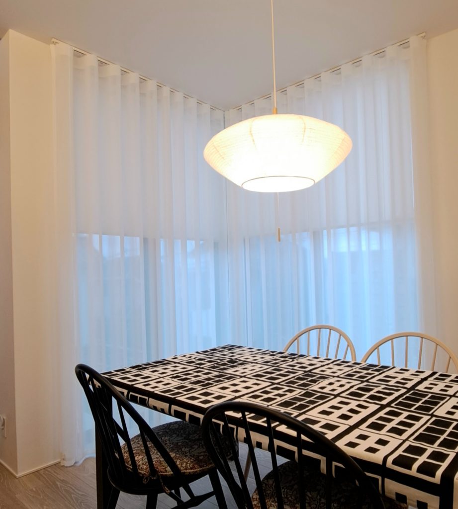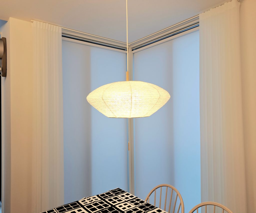タチカワ 調光タテ型ブラインドエアレ、ノーマン スマートドレープシェードも良いですがこの仕様もスッキリとした印象でなかなか良いですよ。