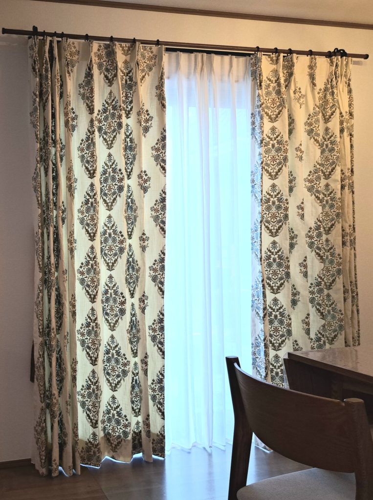 ドレープカーテンはエレガントながらどことなくオリエンタルな雰囲気があるMANAS-TEX Devon(コットン裏地付き)。